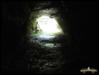Dinding dalam Goa tampak berkilauan saat sinar dari headlamp saya menyoroti keadaan dalam Goa, rongga dalam Goa ini memiliki ketinggian sekitar 180cm sehingga didalam sini saya masih bisa berdiri tegak tanpa perlu membungkukkan badan, hanya di rongga dekat pintu keluar saja kalian harus membungkukkan badan supaya tidak terbentur dinding atas Goa, sesekali saya mencoba mematikan headlamp dan ternyata tanpa alat penerangan suasana sekitar dalam Goa benar-benar full black alias gelap total karena sinar dari pintu masuk Goa juga tidak sampai ke bagian dalamnya, ditambah lagi jalur Goa ini sedikit melengkung, beberapa titik dalam sisi Goa berbentuk seperti kursi yang bisa diduduki.